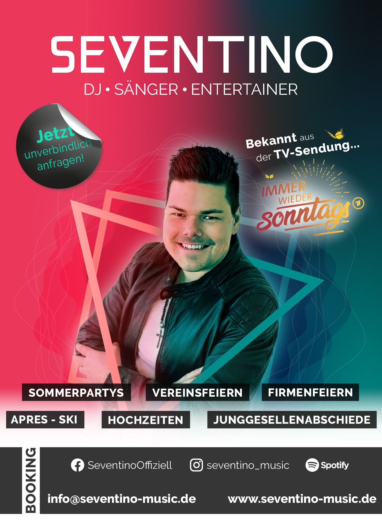 Ab sofort können Sie Seventino nicht nur als Sänger buchen sondern auch als Ihren persönlichen Event DJ optional mit Gesang...